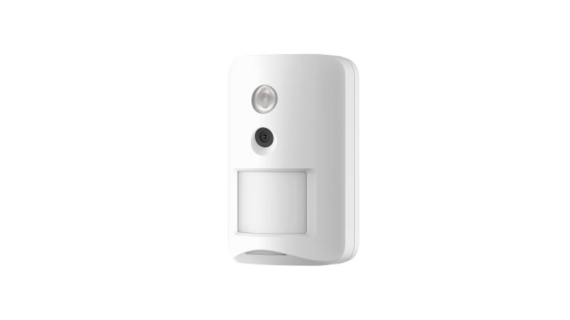 Hikvision DS-PD201PC10-WE wireless PIR and camera detector. Captures snapshots on motion and is pet-friendly for homes.